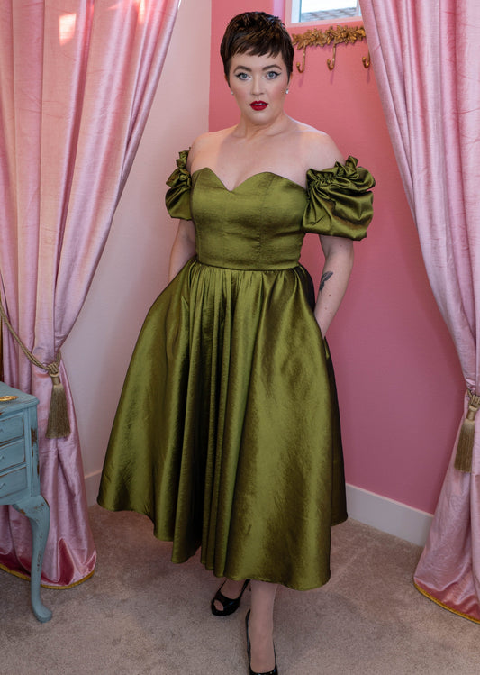 Agatha Dress Olive Green Silk Taffeta