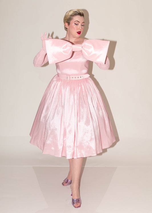 Valentina Dress Baby Pink Silk Shantung With Detachable Bow