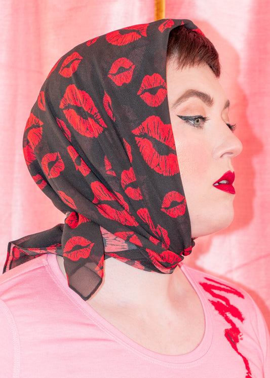 My Weapon Of Choice - Silk Sheer Georgette Scarf - Red Lipstick Black Background