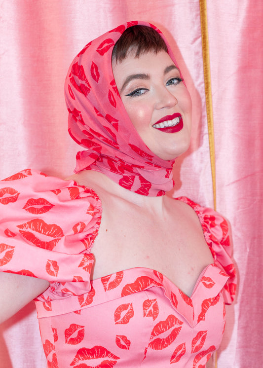 My Weapon Of Choice - Silk Sheer Georgette Scarf - Red Lipstick Pink Background