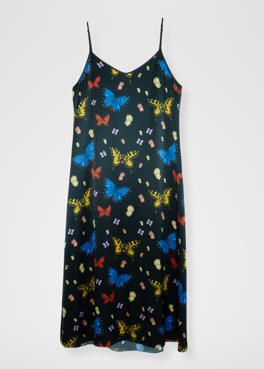 Butterflies Silk Midi Slip Skirt - Sky Blue