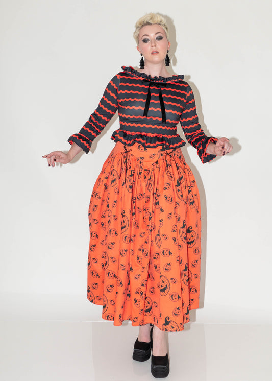 The Alice Maxi Full Gathered Skirt - Pumpkin Print