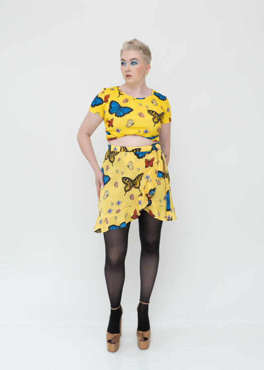 Butterflies Ruffle Mini Wrap Skirt - Yellow